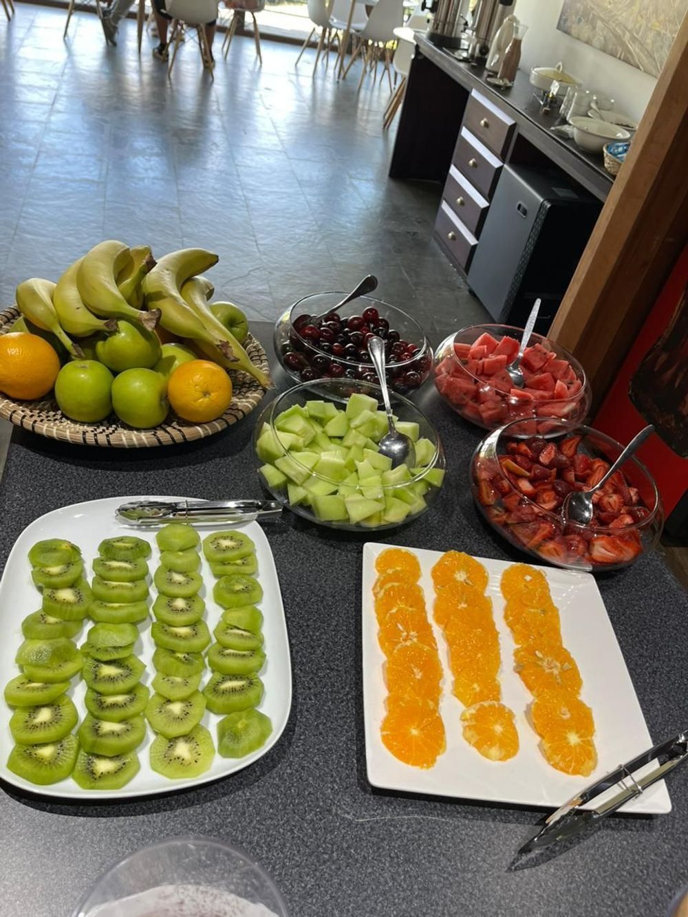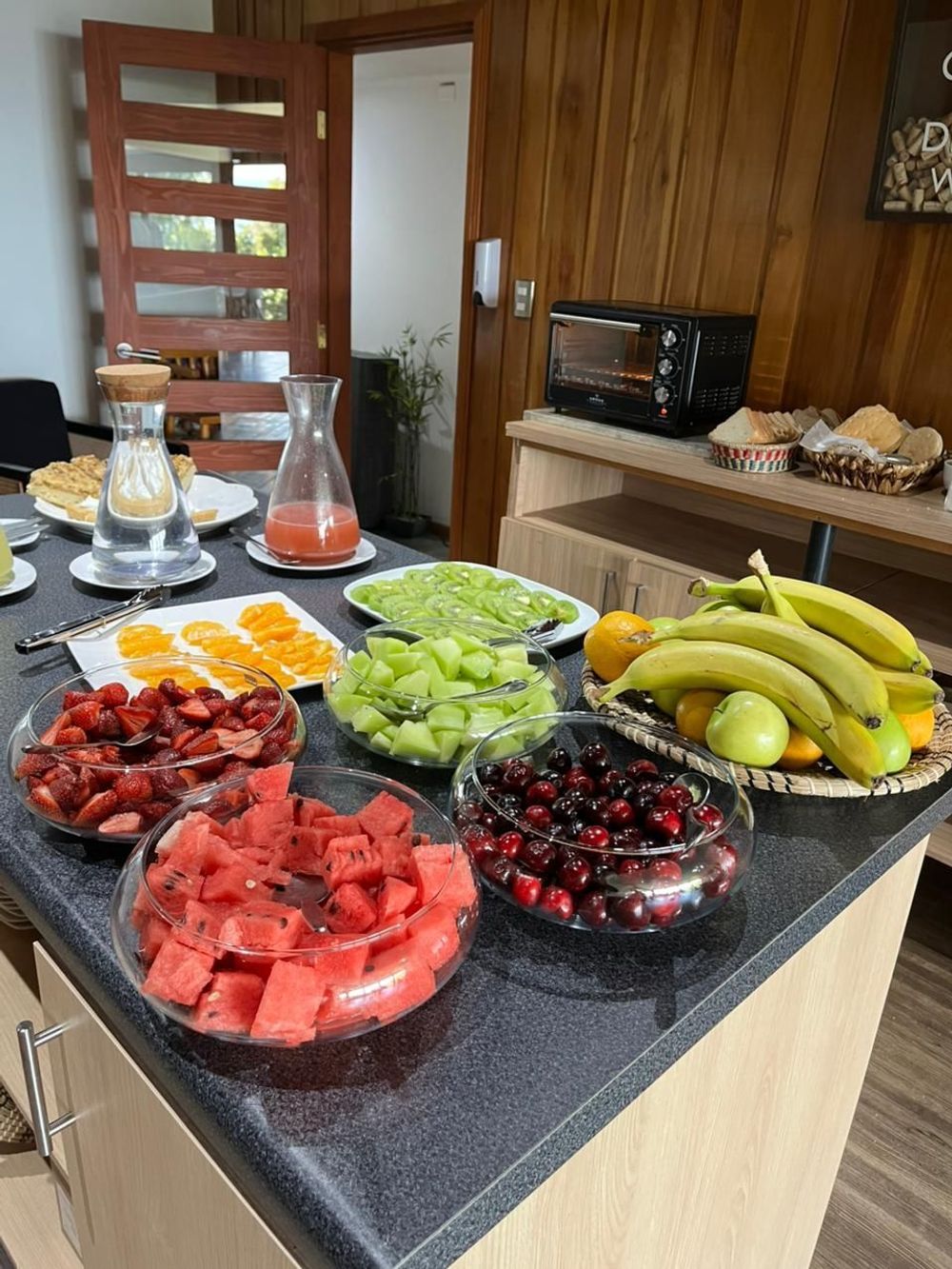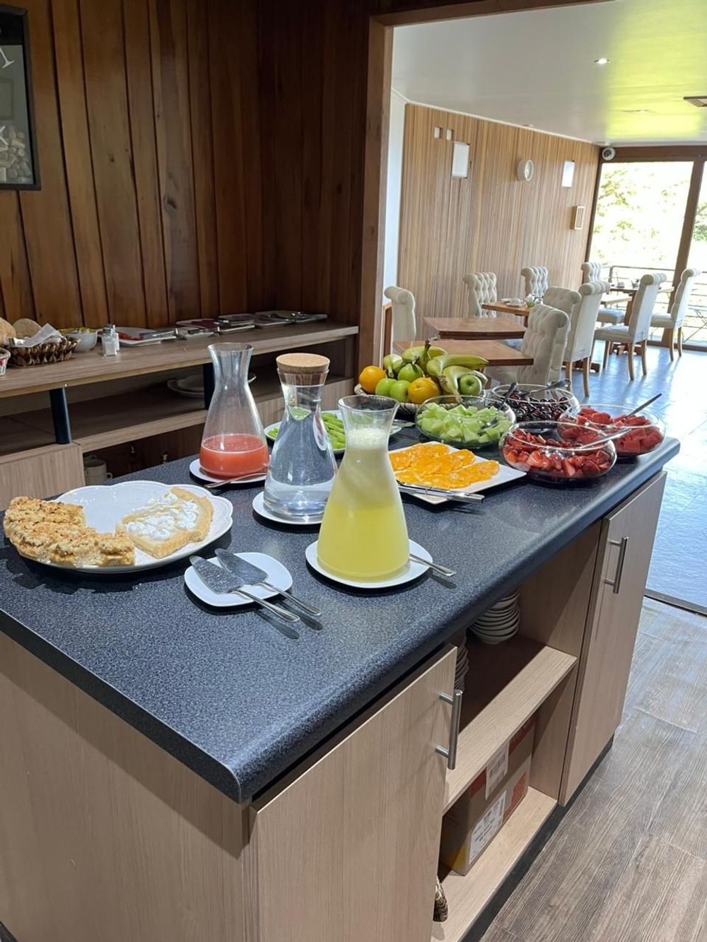 Disfruta de un desayuno continental fresco y reconfortante para comenzar el día con energía. Panes, frutas, café y productos seleccionados se sirven en un ambiente tranquilo y luminoso, acompañado por una vista al lago que invita a despertar sin apuro y disfrutar plenamente la mañana.